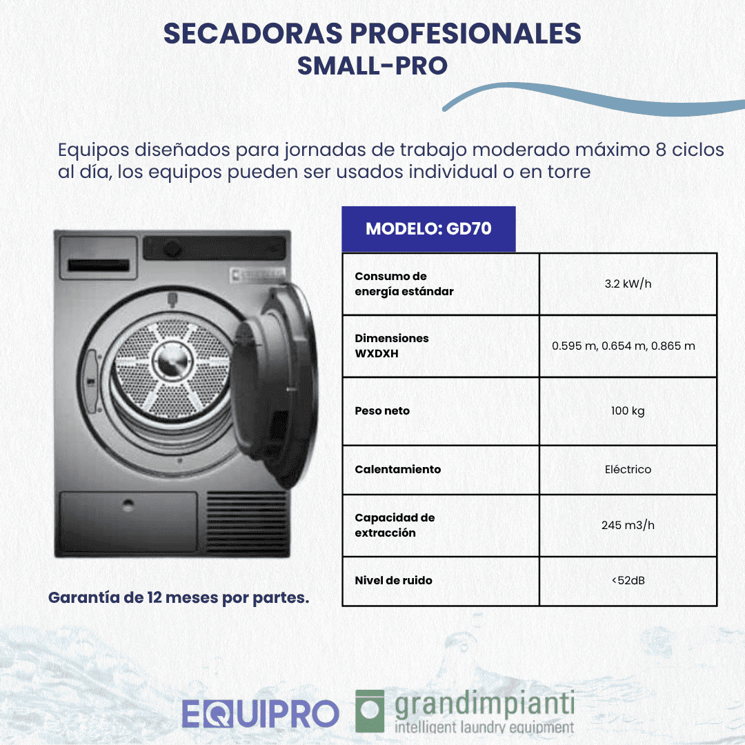 Secadora con tambor fabricado en acero inoxidable y paletas interiores asimétricas para mejorar la flotación de la ropa. * 7 programas automáticos de secado * Una temperatura alta para minimizar el tiempo de secado. * Baja temperatura para secar tejidos sensibles como nailon, acrílicos, rayones y acetatos. *Tensión electrica: 230V *Potencia: 3.2 kw *Capacidad: 6-7 Kg Nivel de ruido por debajo de 52 dB *Dimensiones LxDxH: 595x654x865 mm *Peso neto: 44.4Kg