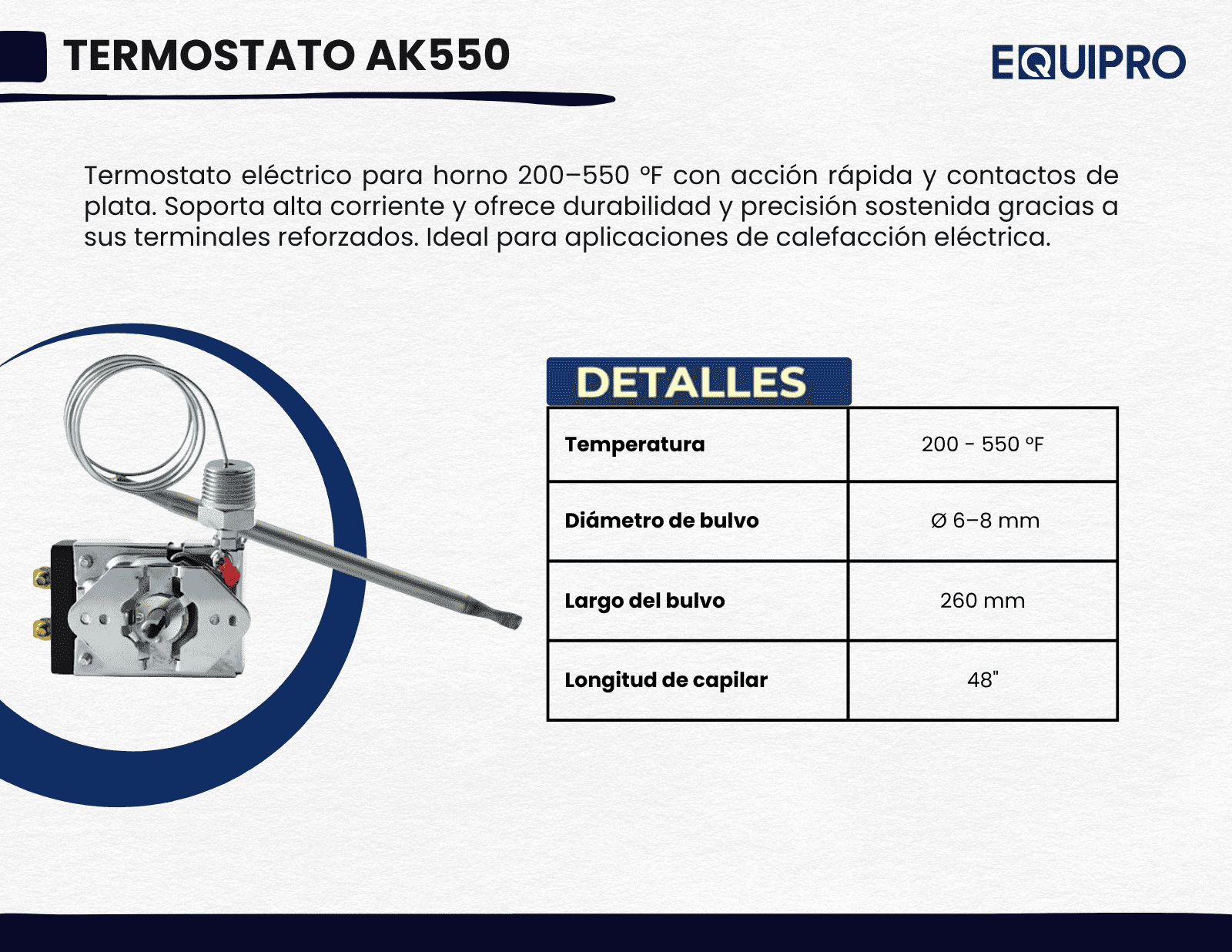 AK550 TERMOSTATO ELECTRICO PARA HORNO DE 200-550°F