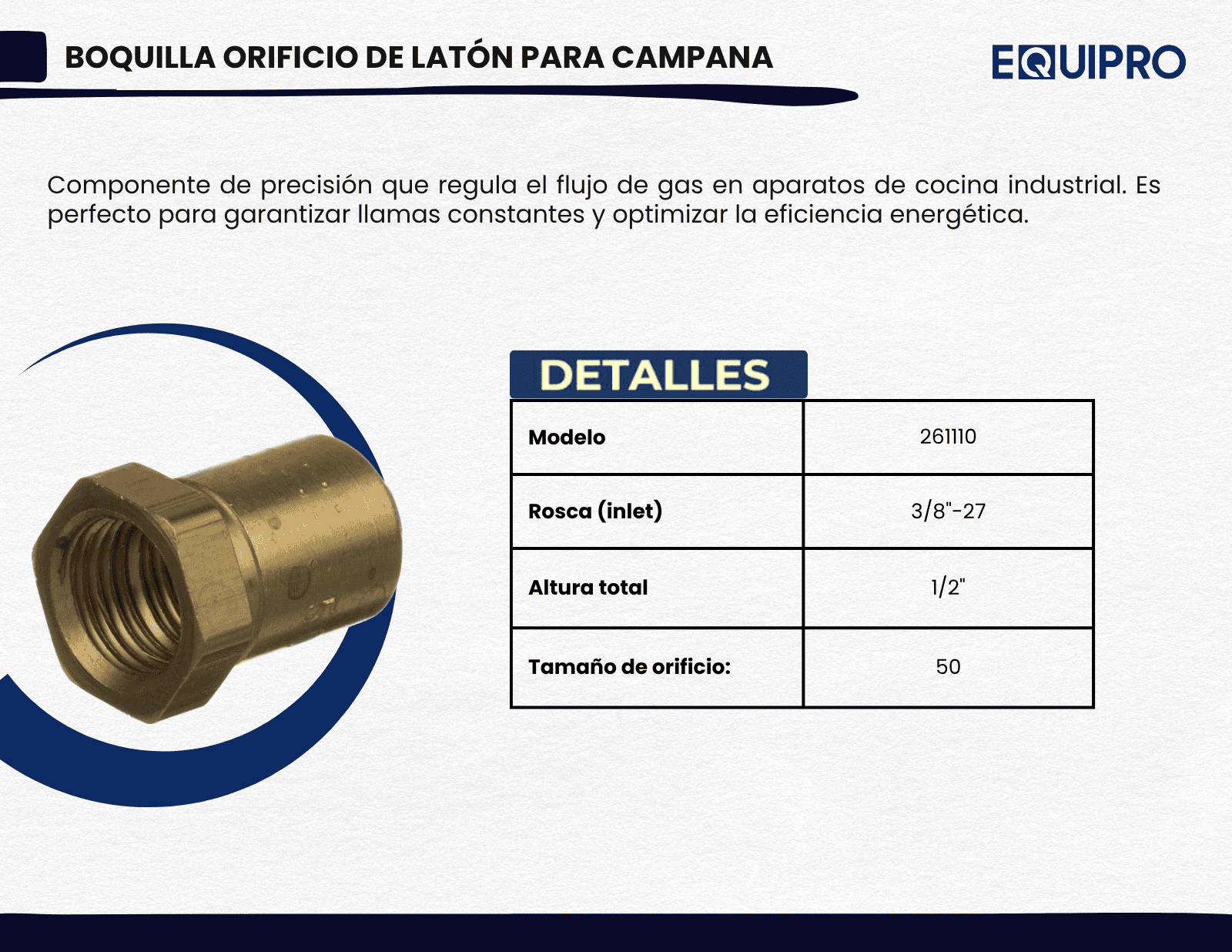 EL ORIFICIO DE LA CAMPANA DE LATÓN,3/8 "-27 X 1/2" DE ALTO X # 50
