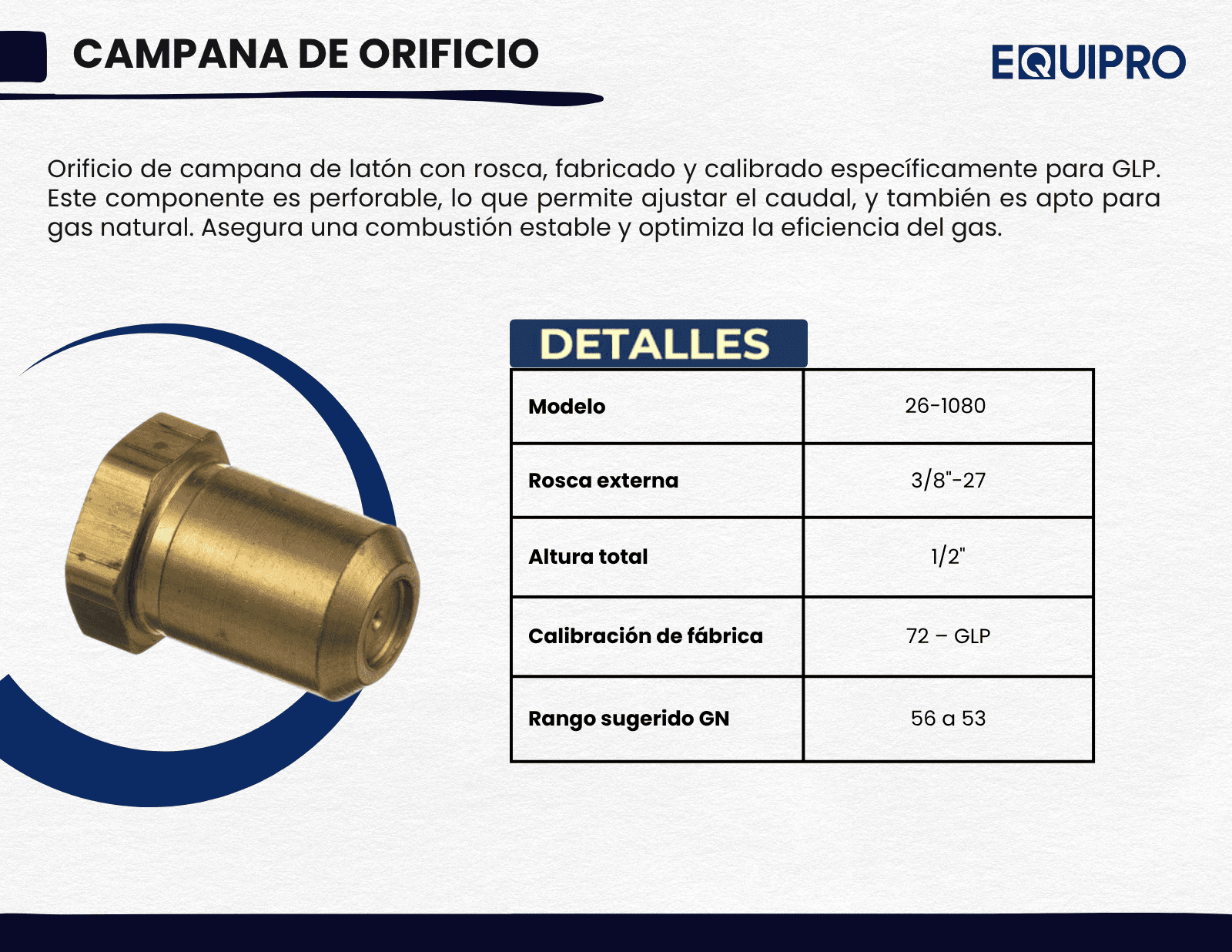 26-1080 - CAMPANA DE ORIFICIO 3/8 - 27 #72 EL ORIFICIO DE LA CAMPANA DE LATÓN, 3/8"-27 X 1/2" DE ALTO X #72, (LP) SE PUEDE PERFORAR PARA OTRO TAMAÑO